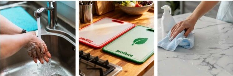 ◾Wash hands with warm, soapy water for 20 seconds before and after handling raw meat.